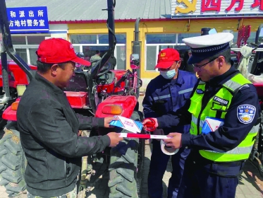 通讯讯当前正值春耕生产关键时期,为切实保障农村道路交通安全,有效预防涉农车辆交通事故,近日,通辽市公安局交管支队国道大队民警深入庆和镇四方地村,开展交通安全宣传活动。