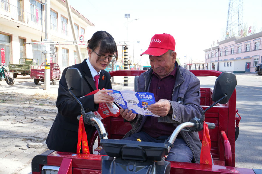 近日,鄂尔多斯市达拉特旗人民法院干警与人民陪审员组成“石榴红法宣队”,走进辖区树林召镇大树湾村,开展“普法进乡村”主题宣传活动。宣传队员立足乡村实际,用通俗易懂的语言,向群众细致解读婚姻家庭、土地流转、赡养义务等与日常生活息息相关的法律法规,并结合典型案例剖析违法后果,着力提升村民的法治意识和风险防范能力,让村民在面对法律问题时心中有底、应对有方。