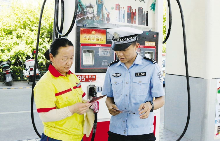 近日,巴彦淖尔市公安局交警支队临河大队组织民警走进辖区加油站,开展了交通安全宣传活动,民警向前来加油的车主、驾驶员和站内员工发放交通安全宣传资料,讲解无证驾驶、超速超载、酒后驾驶等交通违法行为的危害性,倡导大家文明出行,告别交通陋习,共同携手营造平安、畅通的交通环境,并希望加油站员工在日常工作中,做好宣传及安全提示工作,为驾驶员们加上"平安油".