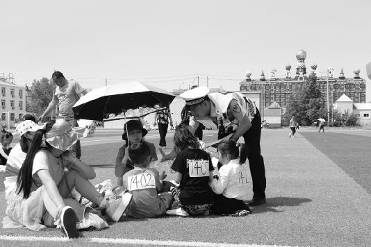 近日,呼伦贝尔市额尔古纳市公安局交巡警大队民警借助各校运动会期间,家长和学生聚集的时机走进校园开展交通安全宣传。民警向学生强调过马路走人行横道,不打闹、不抢道的重要性,并和家长近距离交流,讲解法律法规,希望家长做好孩子安全教育的第一任老师,言传身教,共同提升文明交通意识。