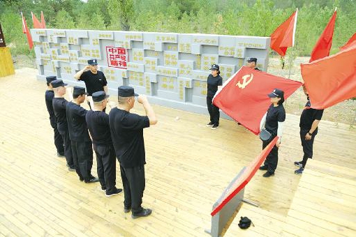 为了深入开展党史学习教育,庆祝建党一百周年,日前,鄂尔多斯市公安局交管支队109国道东线大队党支部与包府大队党支部组织全体党员和预备党员走进伊金霍洛旗“百年精神大道”红色教育培训基地,联合开展了“百年奋斗路、党徽照警徽”主题党日活动。活动现场,党员们聆听历史,重温红色记忆,接受革命洗礼。
