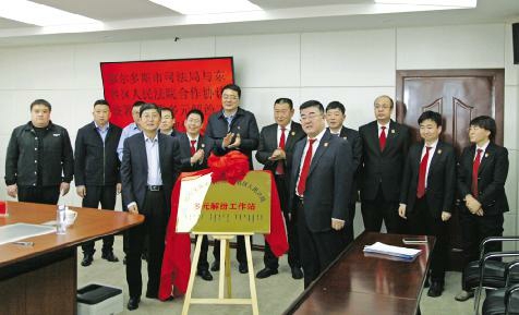 为有效化解社会矛盾,鄂尔多斯市司法局结合优化法治化营商环境,精心打造“菜单式”解纷精品,与东胜区人民法院共建多元解纷工作站,提供无缝对接的解纷服务,努力实现市域社会治理现代化。近日,鄂尔多斯市司法局与东胜区人民法院合作协议签约仪式暨多元解纷工作站揭牌仪式在东胜区人民法院隆重举行。鄂尔多斯市司法局党组书记、仲裁委常务副主任兼秘书长高凤义,东胜区人民法院党组书记、院长张海龙为多元解纷工作站揭牌。东胜区人民法院党组副书记、副院长苗繁盛主持签约仪式。