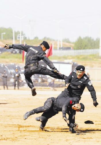 本次演习以“喜迎二十大·忠诚保平安”为主题,动用警用直升机、无人机、消防装甲车及排爆机器人等,集中展示内蒙古反恐应急处置力量的高精尖装备,围绕警务实战技术、无人机技术和反恐怖综合演习三项内容,开展全要素全流程反恐警务实兵对抗演习,全面检验应急机制、着力提高处置水平、综合锤炼专业队伍、不断增强应对能力,以过硬的技战术水平和昂扬的战斗作风,充分展现内蒙古公安锻造祖国北疆反恐劲旅的坚定决心。 (文/图韩斌)
