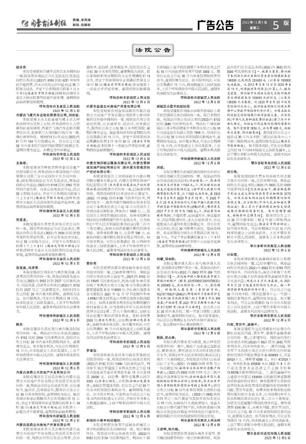 鄂尔多斯市东胜区人民法院2022年12月6日