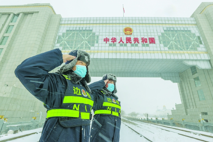 近日,呼伦贝尔地区遭遇风吹雪天气,气温降至-16℃,最大风力达到8级。满洲里口岸受降雪影响,导致道路湿滑泥泞,为出入境车辆通行带来不便。驻守在此的内蒙古出入境边防检查总站满洲里边检站民警顶风冒雪坚守岗位,第一时间启动特殊天气勤务预案,及时增派执勤警力,并启动应急绿色通道,增加边境线巡查频次,积极清理限定区域内积雪,确保了出入境车辆安全、顺畅通关。
