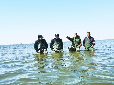 在山的那边湖的那边,活跃着一支新生力量,他们勇敢机敏、尽职尽责,倾心倾力守护着绿色的呼伦湖,他们就是呼伦贝尔市公安局呼伦湖分局乌尔逊河捕捞分公司义警队。在深入推进“平安义警”群防群治队伍建设过程中,乌尔逊派出所将公安触角延伸至呼伦湖保护区最前沿,形成了保护区综合执法局、公安派出所、企业义警齐抓共管的多元共治局面。