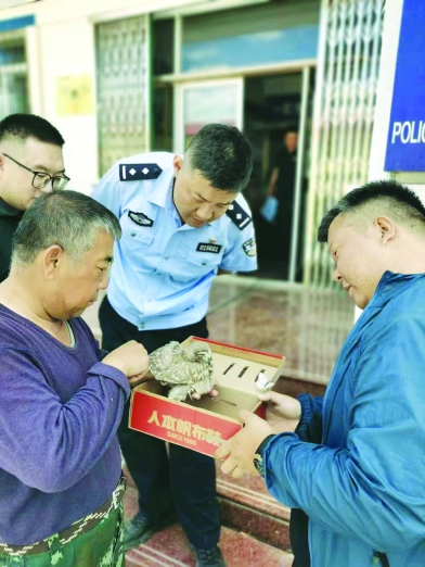 6月13日,辖区群众李先生在黄合少镇石人湾路边发现一只类似猫头鹰的鸟受伤,随后来到黄合少派出所请求救助。民警发现这只灰褐色的小鸟缩作一团,一动不动,赶紧找来纸箱,将小鸟放到纸箱内确保安全,并与赛罕区动物保护协会工作人员取得联系。