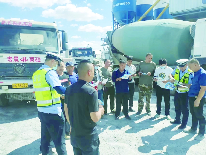 阿拉善讯为切实加强辖区内重点企业的源头监管,提高驾驶人安全驾驶意识,及时消除道路交通安全隐患,近日,阿拉善盟公安局交管支队高新技术产业开发区大队组织民警深入辖区巴音敖包工业区宏晨商砼公司开展交通安全隐患排查工作,努力营造文明和谐的道路交通环