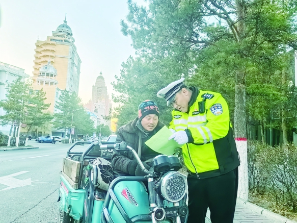 近日,呼伦贝尔市满洲里市公安局交通管理大队针对电动车骑乘人员开展交通安全宣传活动。外勤交警在执勤执法过程中遇有电动车骑行人员出现未按规定佩戴安全头盔、逆行、闯红灯等交通违法行为时,及时制止,并结合辖区内发生的涉及电动车交通事故案例耐心向群众以案释法,同时,现场演示佩戴安全防护头盔的正确方法,提醒广大群众骑乘电动车出行时,自觉佩戴好安全头盔,谨慎驾驶,文明出行。 张奉伟摄