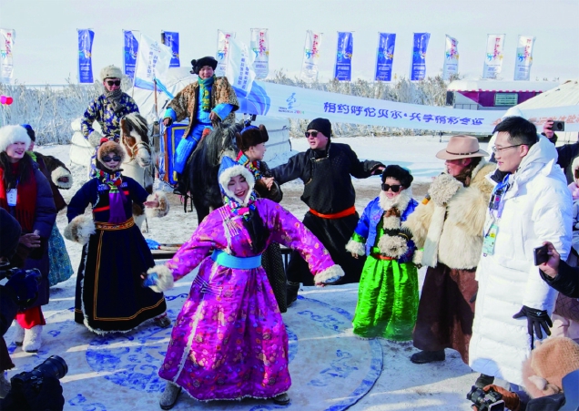 “十四冬”不仅吸引了全国各地的游客,也迎来了众多海外客人。来自俄罗斯的乌力、莎伊丽为了一睹中国“十四冬”的风采,一个星期前就来到了呼伦贝尔,并观看了多场赛事。在莫日格勒河,他们玩儿得最开心的是转雪圈,莎伊丽说:“那种呼吸着冰凉而清新的空气,边仰望蓝天边旋转的感觉实在太美妙了!”其间,乌力还参与了雪地博克,尽管没有获胜,牧民们仍热情地为他披上了“打哈(一种山羊皮毛制作的服饰)”。