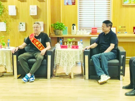 内蒙古见义勇为基金会理事长陶建(右)慰问希德夫。