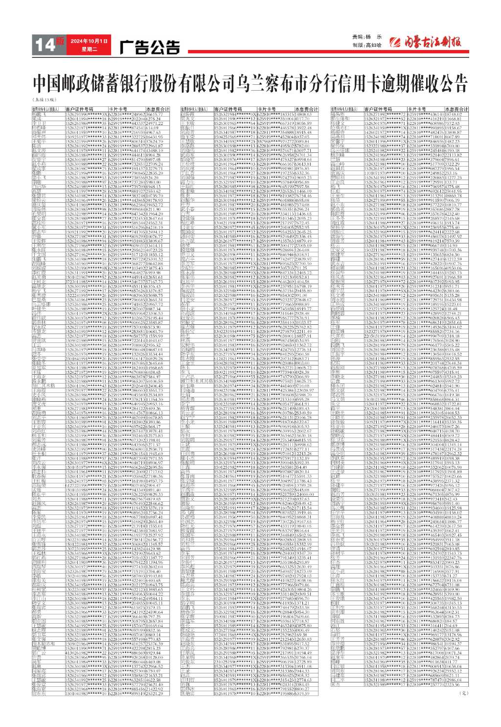 中国邮政储蓄银行股份有限公司乌兰察布…