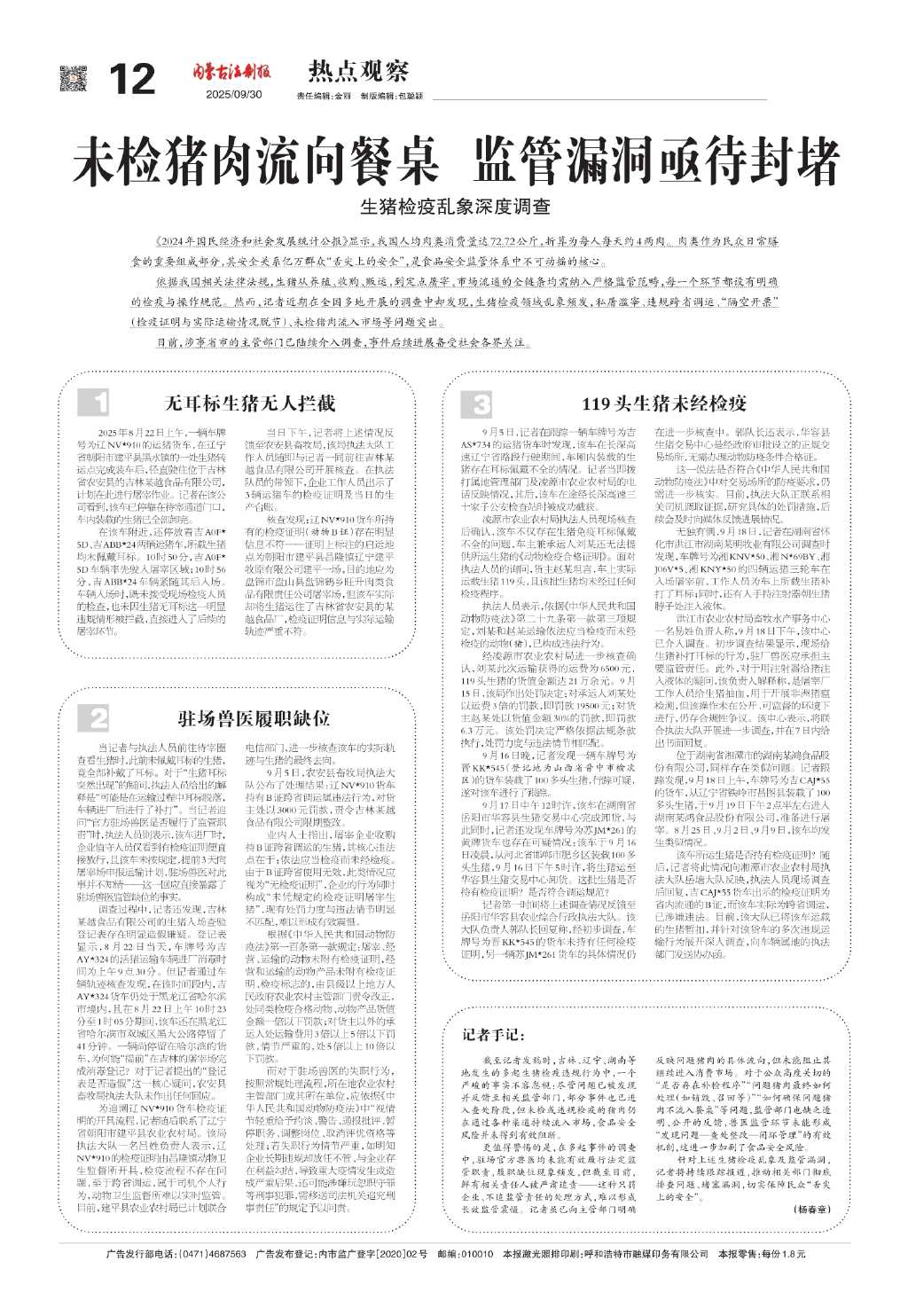 未检猪肉流向餐桌监管漏洞亟待封堵
