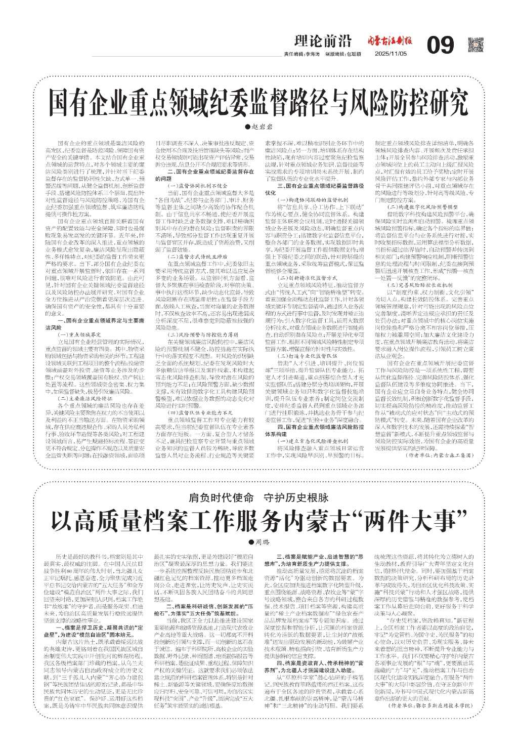 以高质量档案工作服务内蒙古“两件大事…