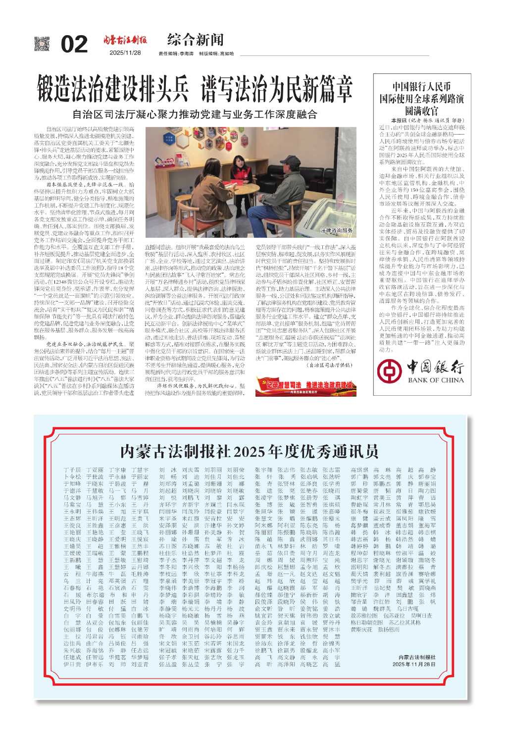内蒙古法制报社2025年度优秀通讯员