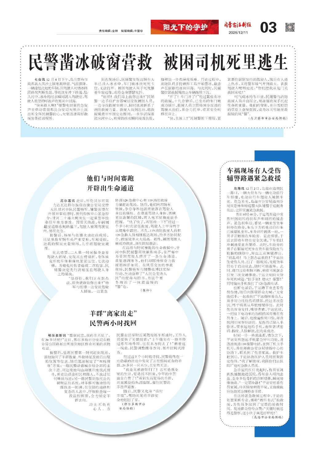 民警凿冰破窗营救被困司机死里逃生