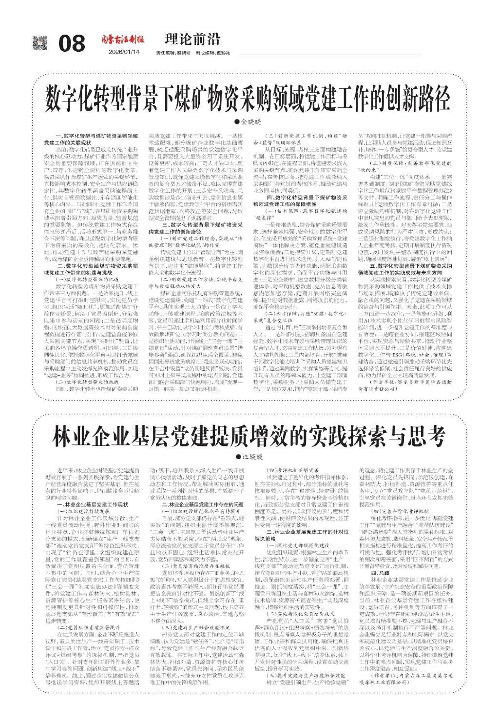 林业企业基层党建提质增效的实践探索与…