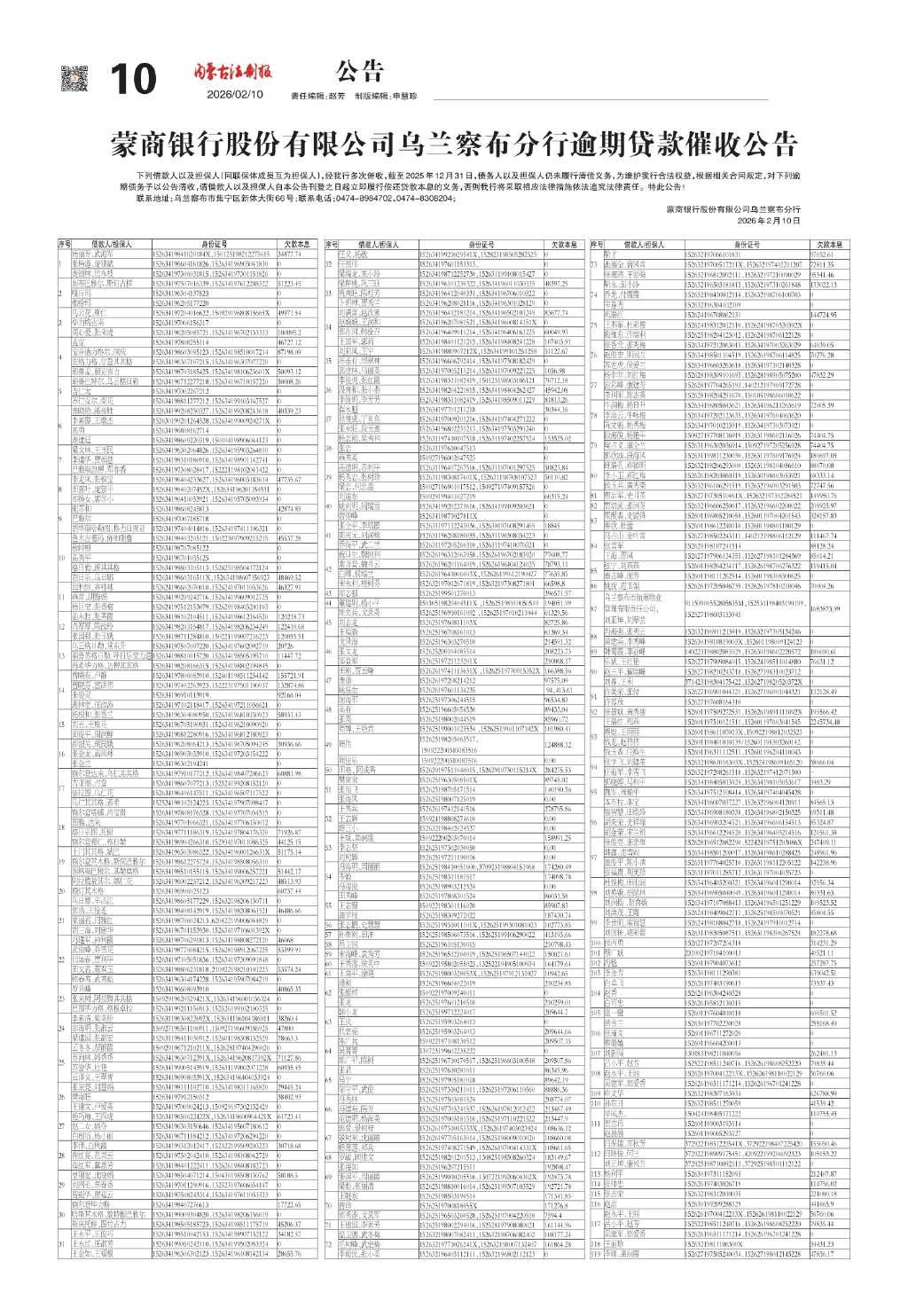蒙商银行股份有限公司乌兰察布分行逾期…