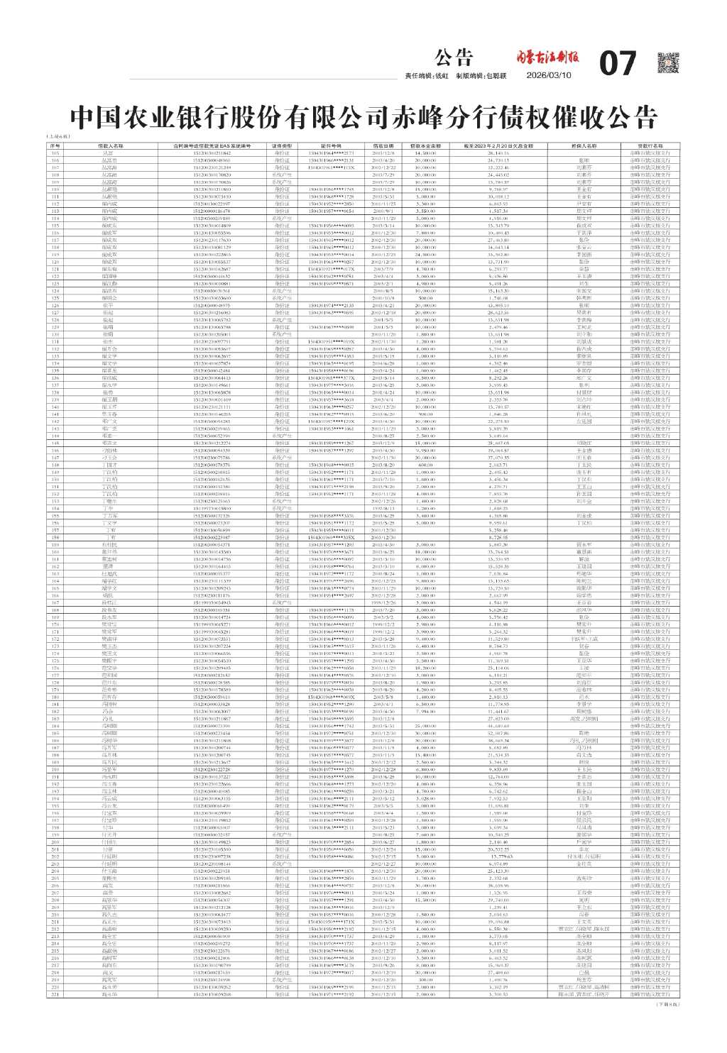中国农业银行股份有限公司赤峰分行债权…