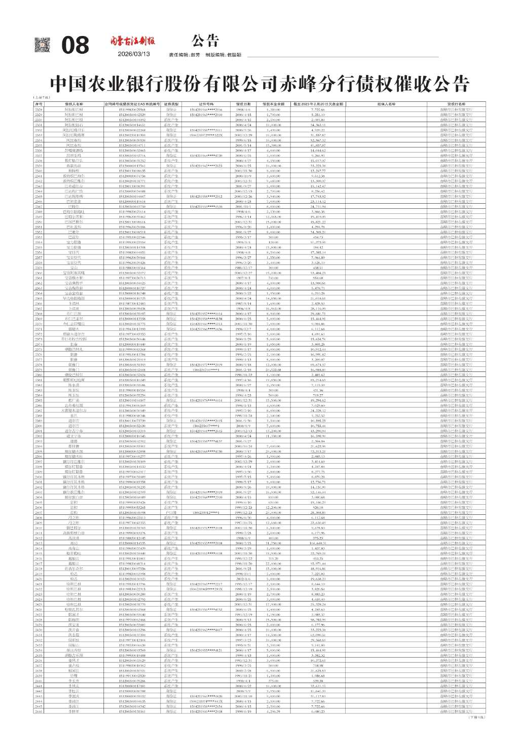 中国农业银行股份有限公司赤峰分行债权…