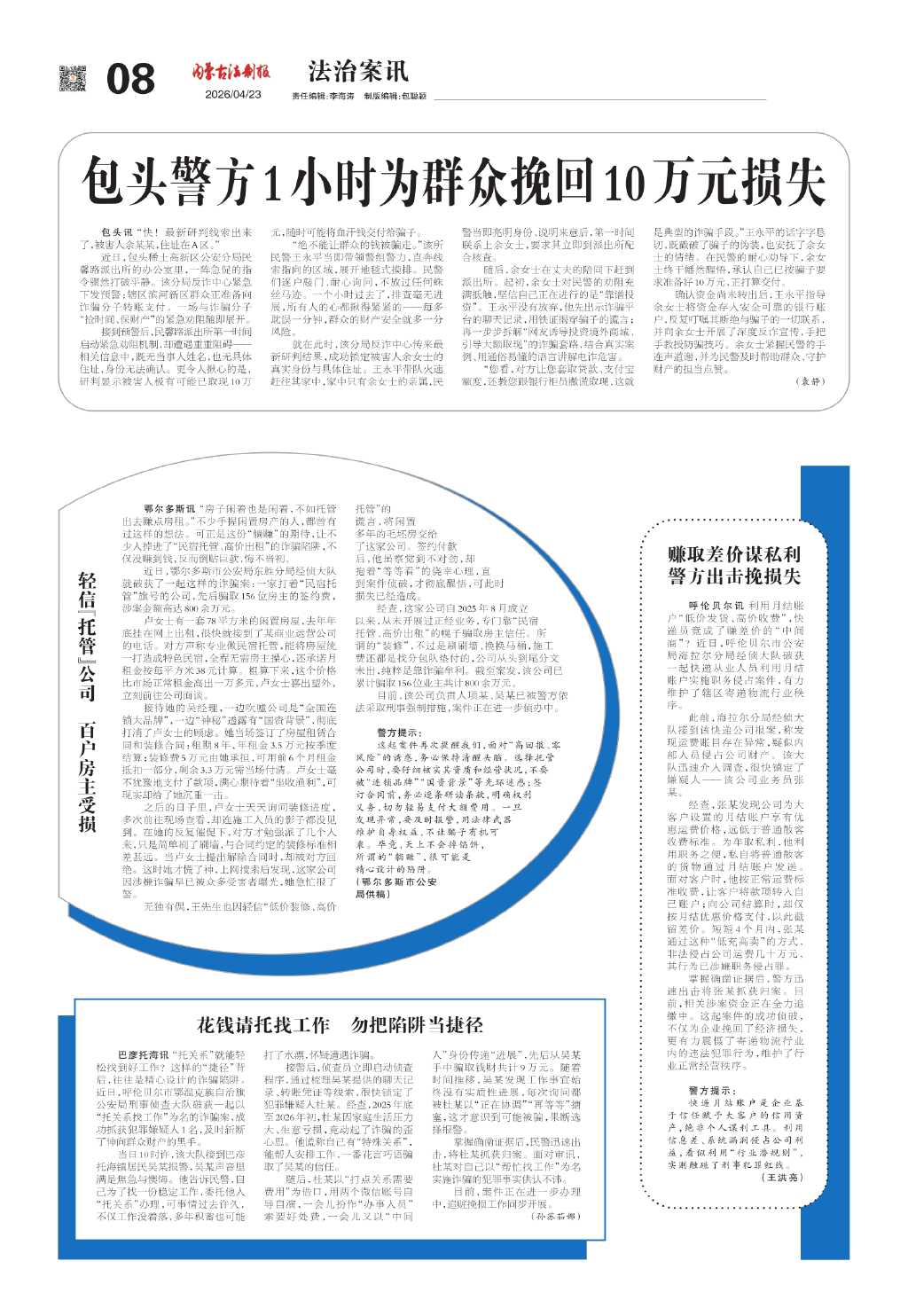 包头警方1小时为群众挽回10万元损失