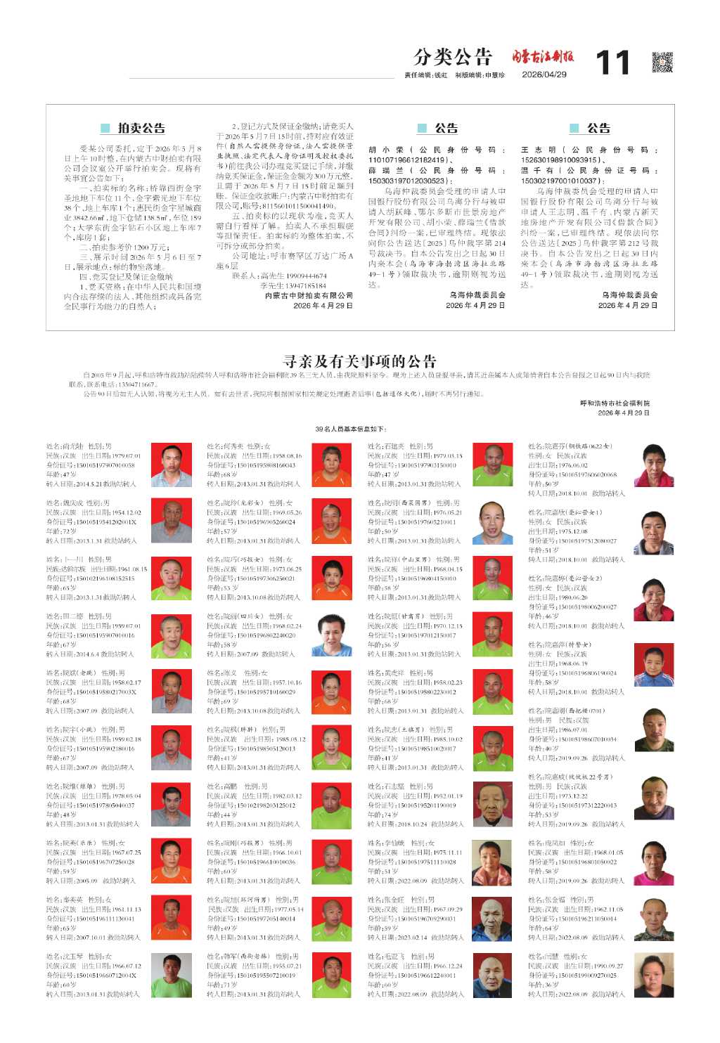 寻亲及有关事项的公告