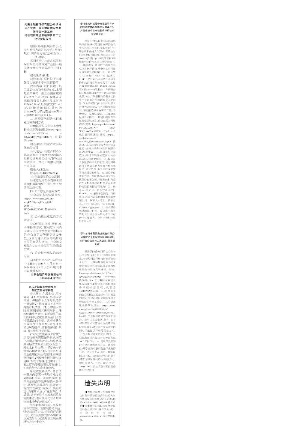 遗失声明