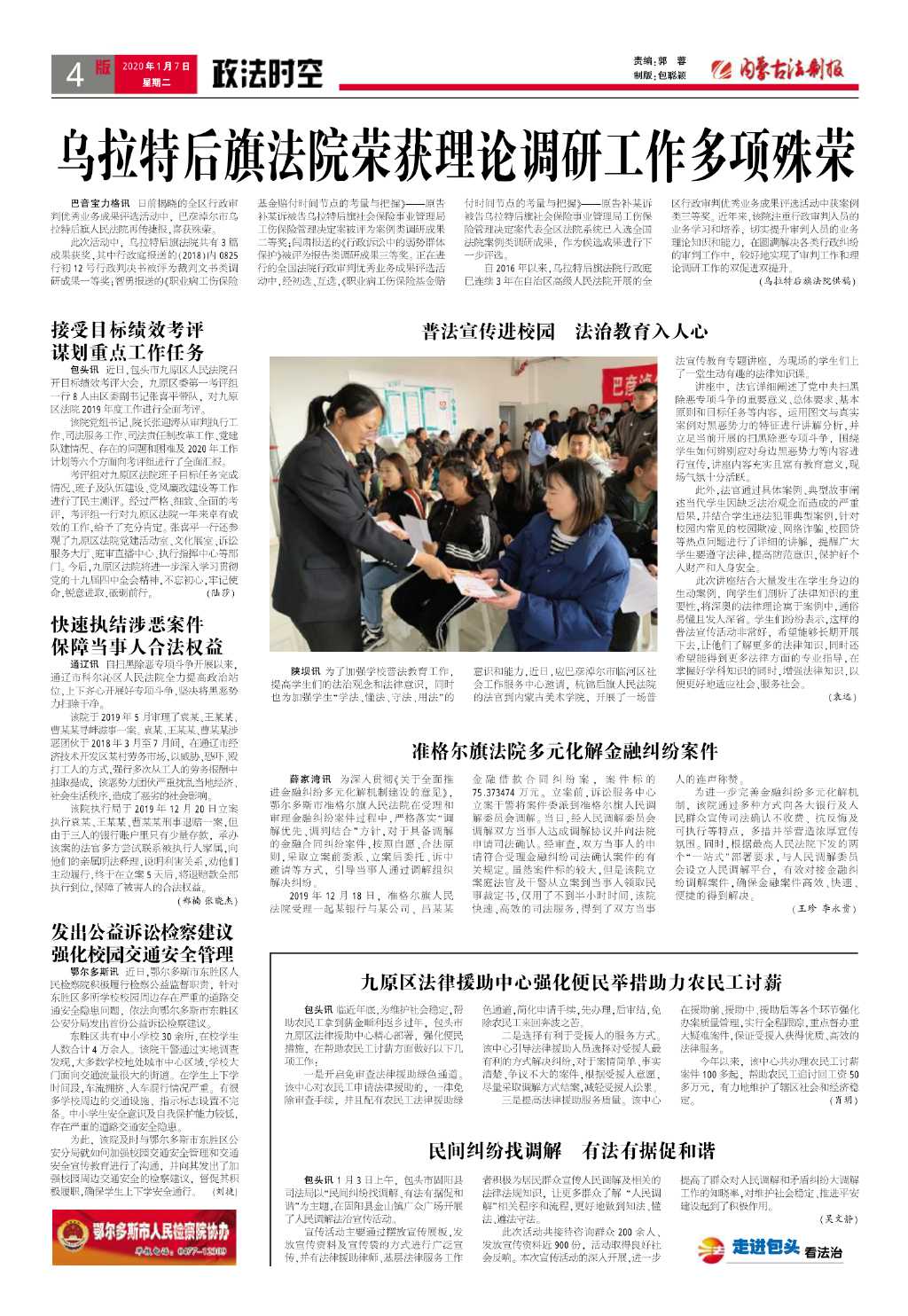 乌拉特后旗法院荣获理论调研工作多项殊…