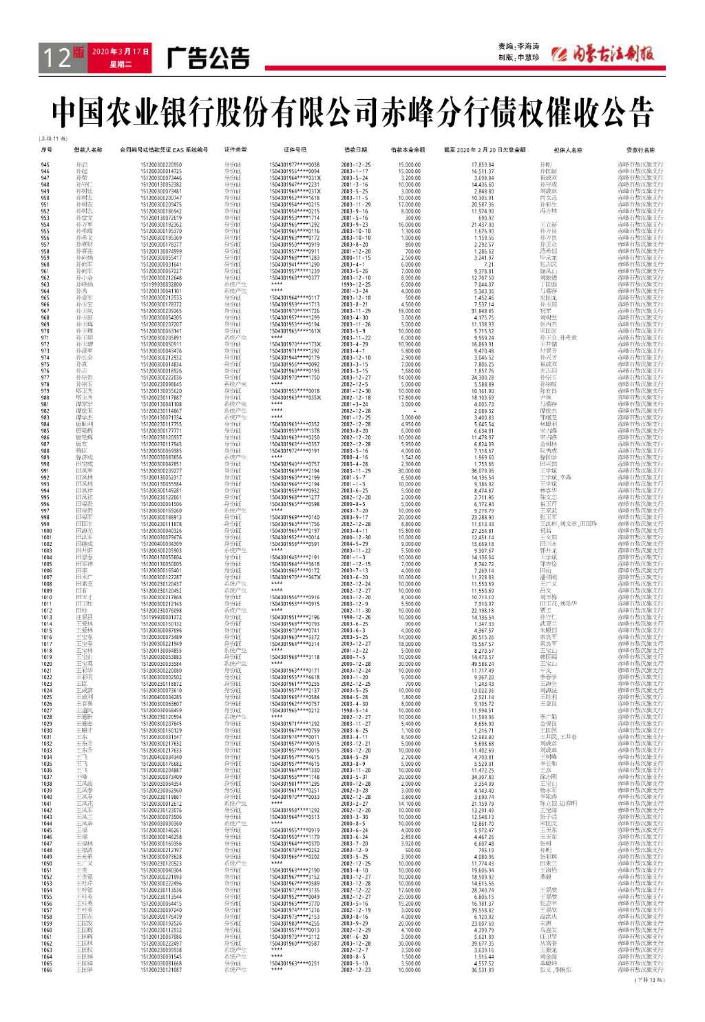 中国农业银行股份有限公司赤峰分行债权…